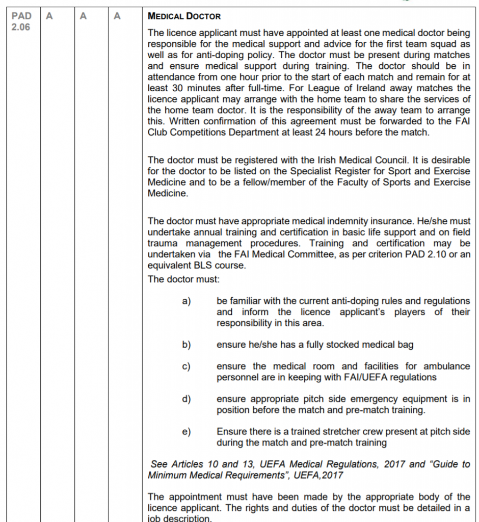 Failure to have the above personnel in place will mean the refusal of a license for the 2022 Premier Division Season.